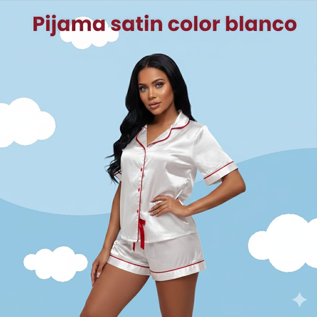 CAMISA Y SHORT EN SATIN COLOR BLANCO